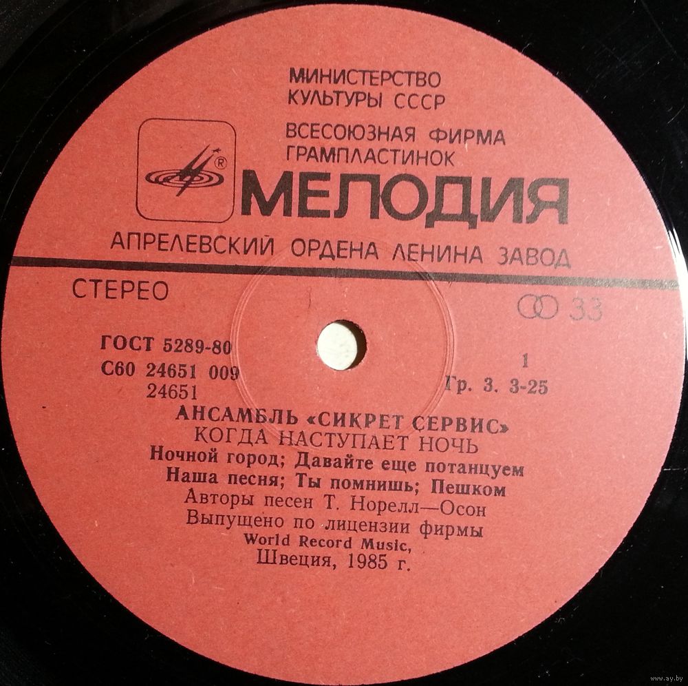 Производитель грампластинки – Апрелевский Завод Грампластинок