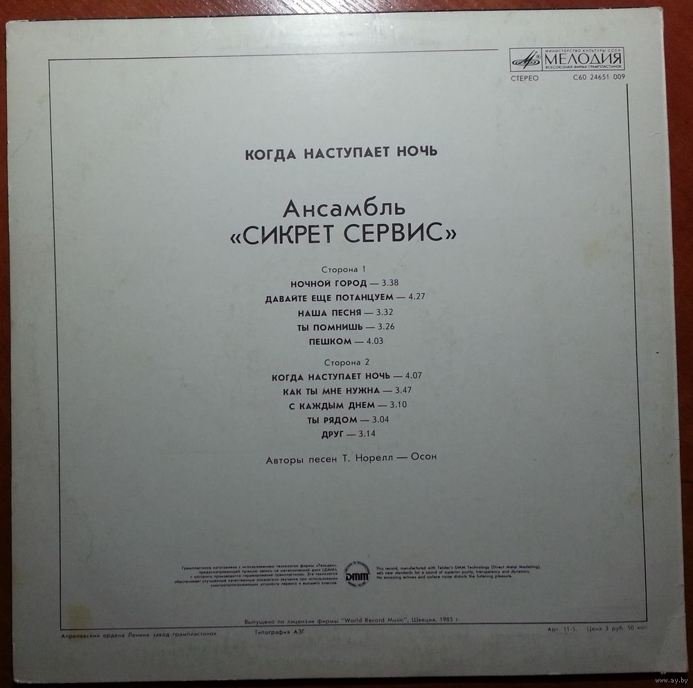Выпущено по лицензии фирмы "World Record Music", Швеция, 1985 г.
