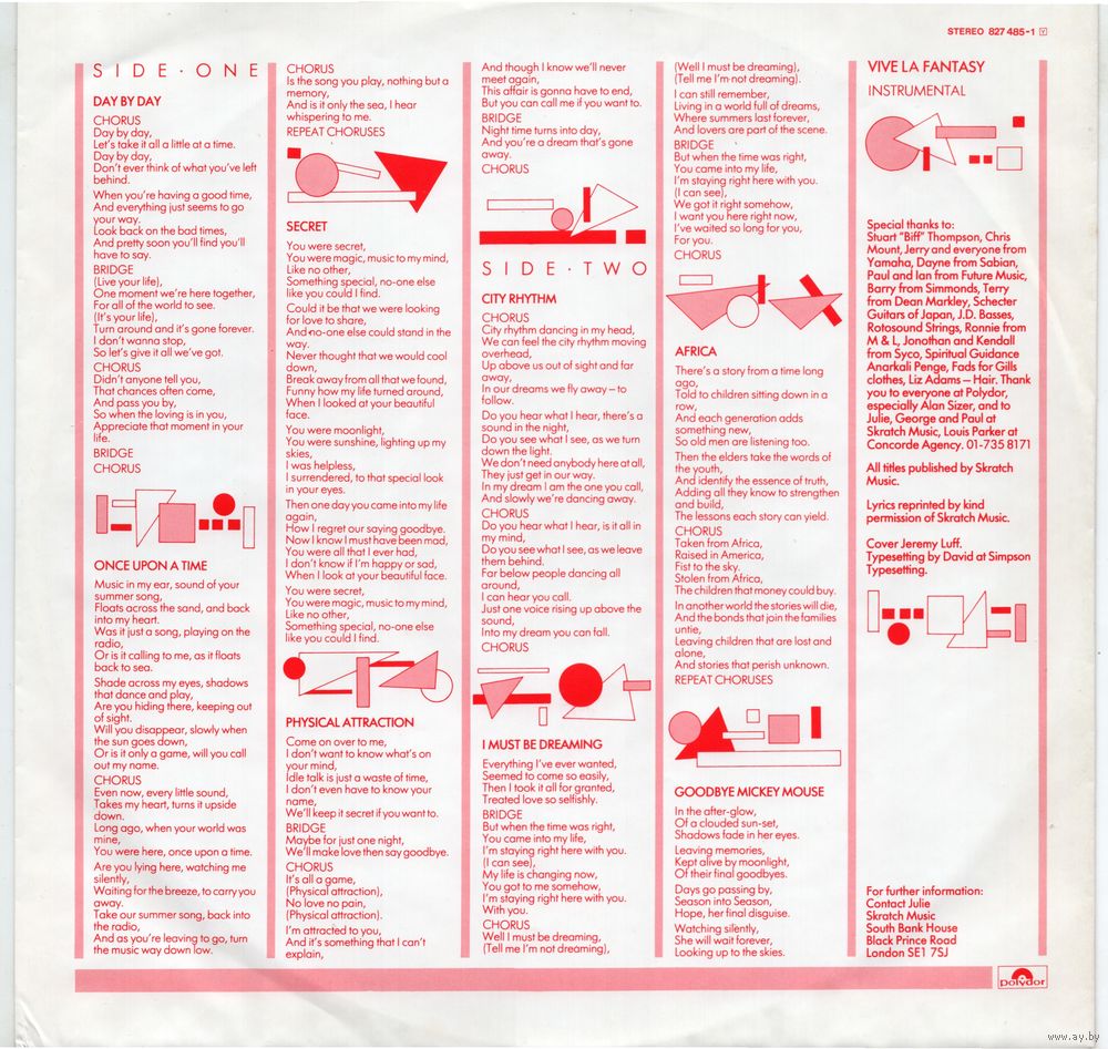 Унутраная капэрта (inner sleeve): VG+ (адмысловая да альбому)