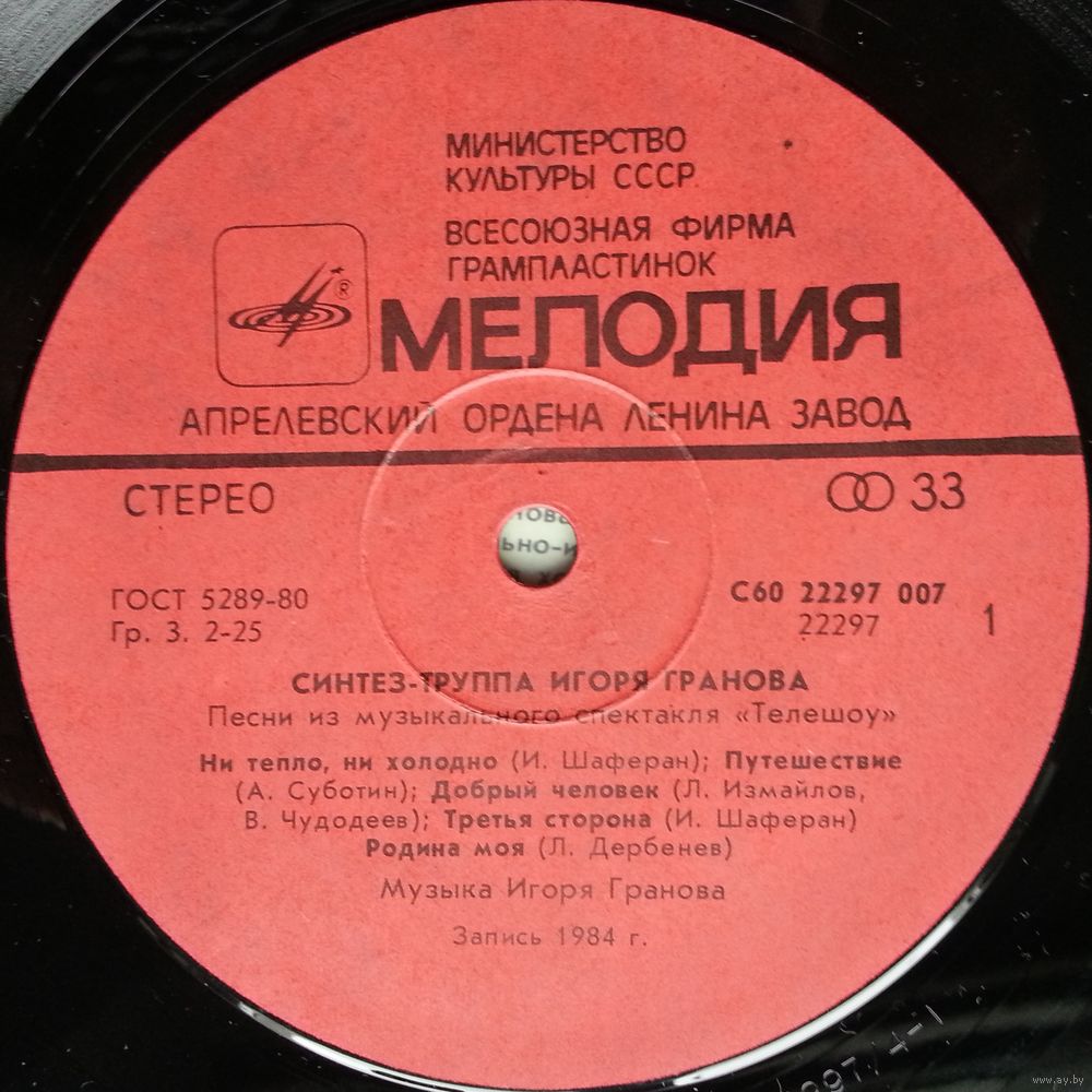 Всесоюзная студия грамзаписи. Запись 1984 года