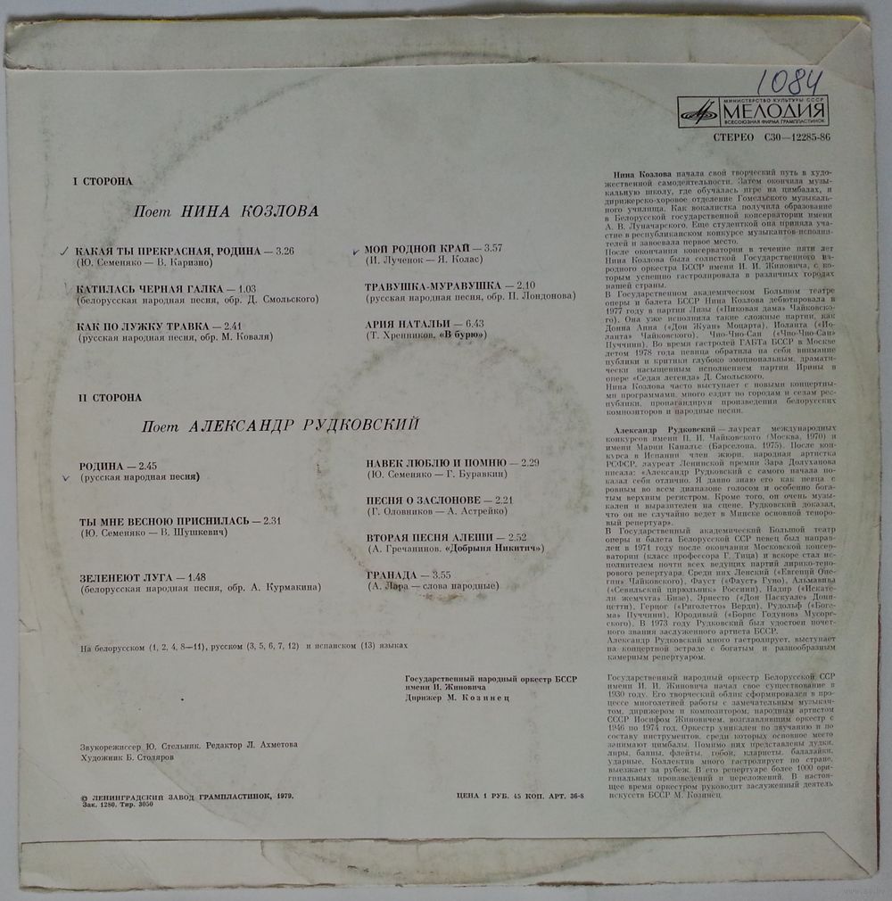 Гос. народный оркестр БССР им. И. Жиновича, дир. М. Козинец.