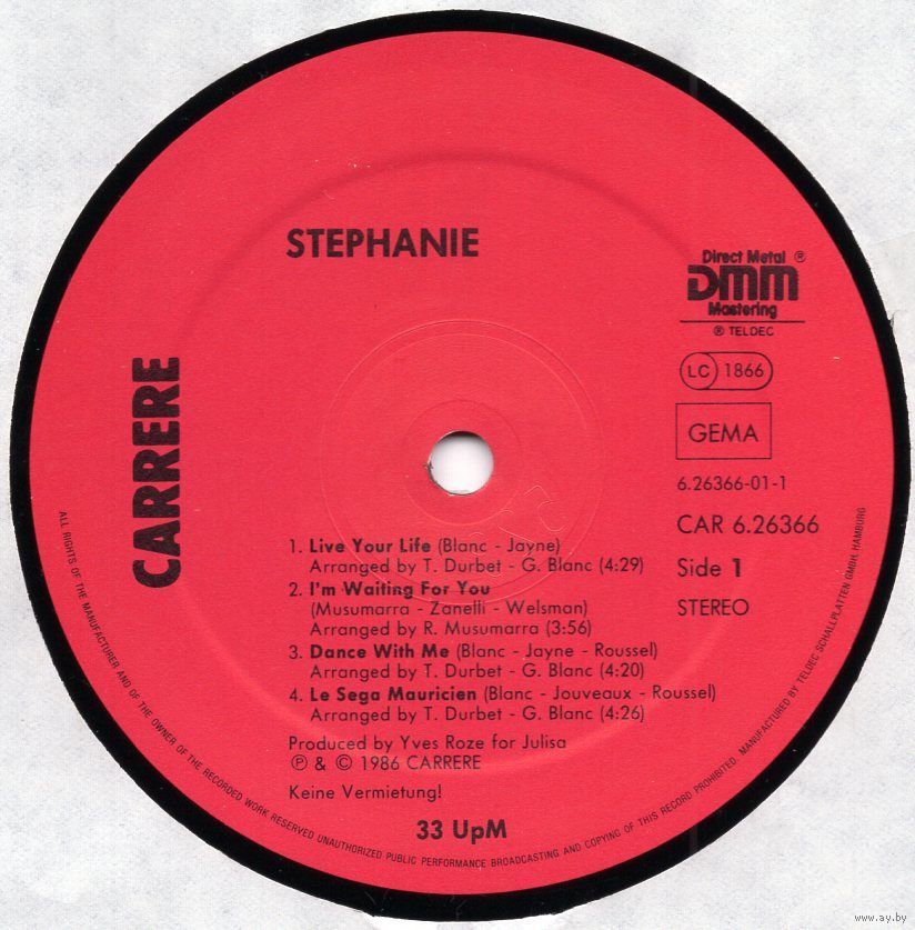 Месца вырабу: Нямеччына, Teldec Schallplatten GmbH, Hamburg