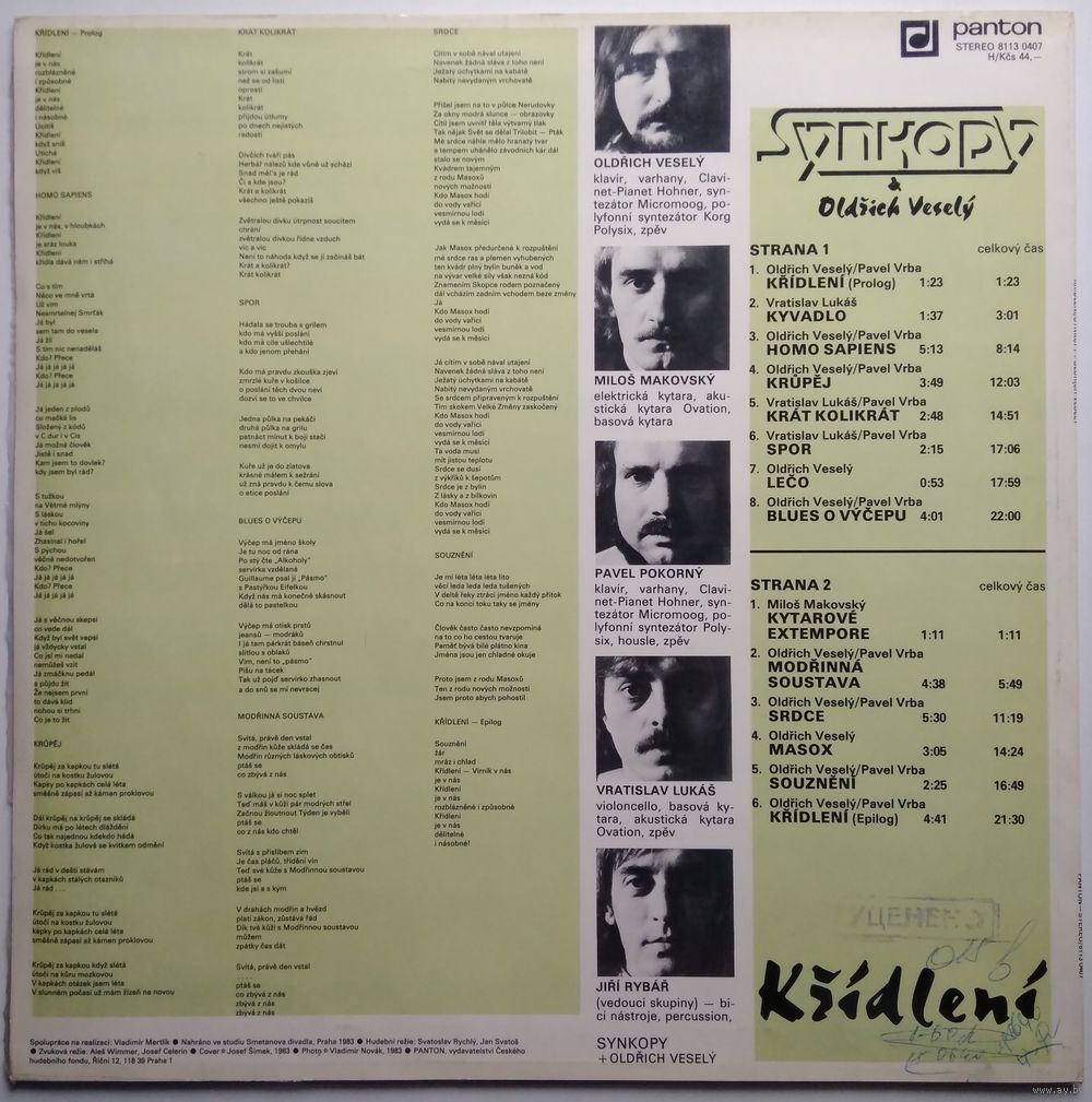 Oldrich Vesely: klavir, varhany, Clavinet-Pianet Hohner, sintezator Micromoog, polyfonni sintezator Korg Polysix, spev