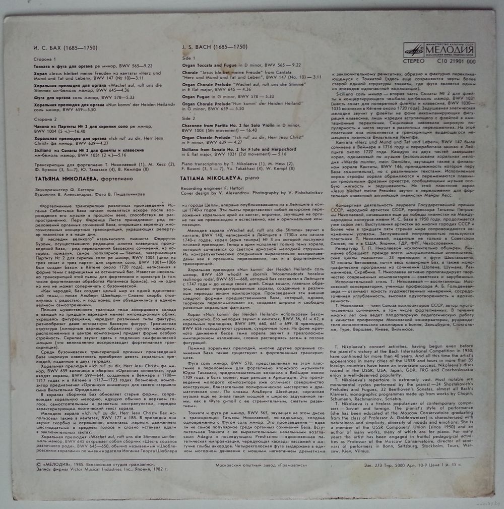 Транскрипции для фортепиано Т. Николаевой (1), М. Хесс (2), Ф. Бузони (3, 5—7), Ю. Такахаси (4), В. Кемпфа (8)