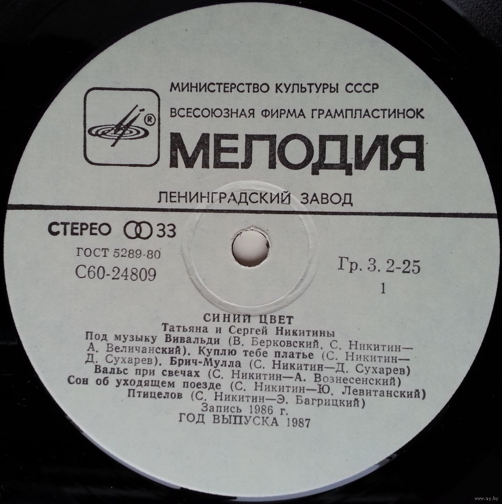 Всесоюзная студия грамзаписи. Запись 1986 г.