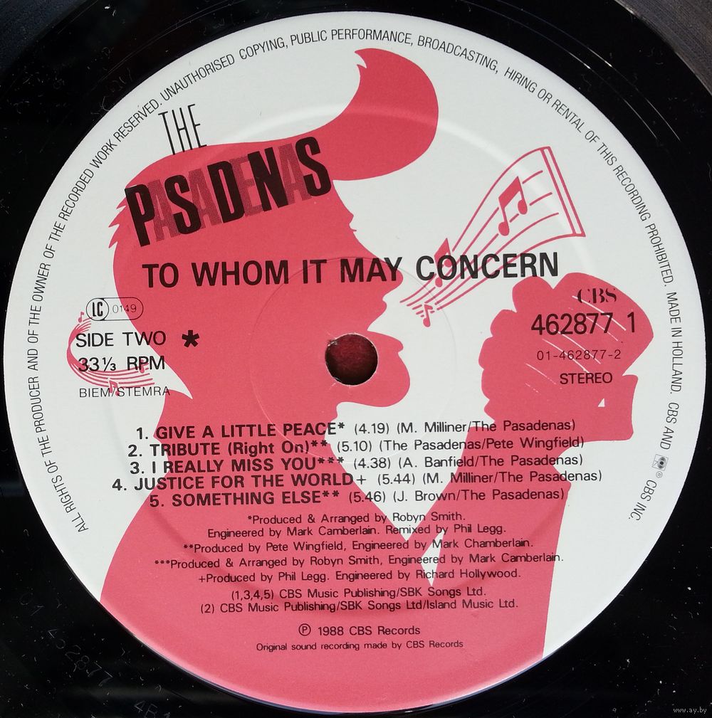 LP The Pasadenas – To Whom It May Concern (1988) Funk / Soul, Neo Soul