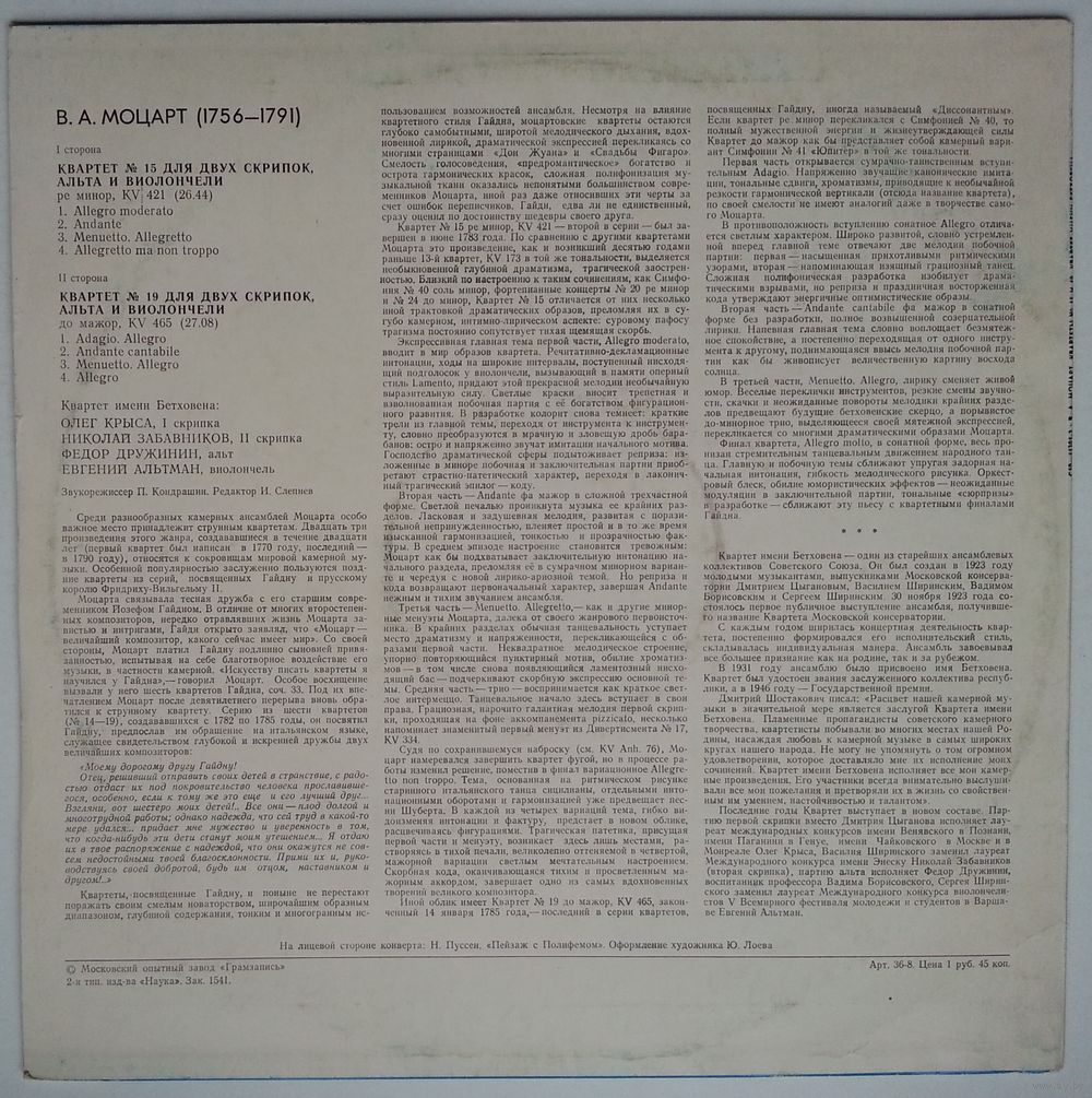 Квартет № 15 Для Двух Скрипок, Альта И Виолончели Ре Минор (KV 421) (26:44)