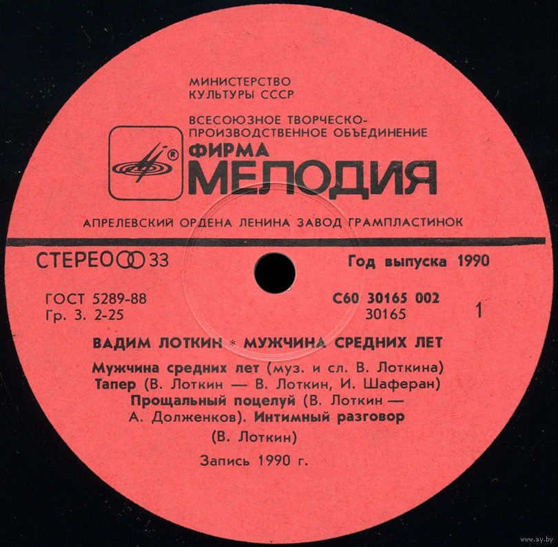 Всесоюзная студия грамзаписи. Запись 1990 года.