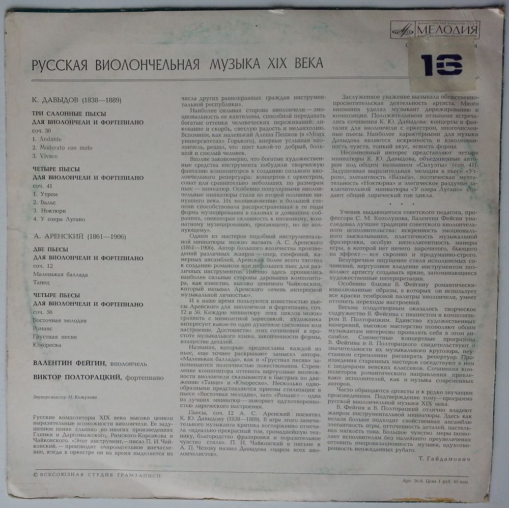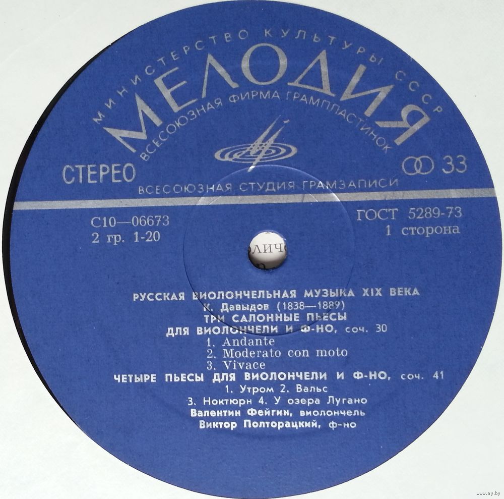 Производитель грампластинки – Всесоюзная Студия Грамзаписи