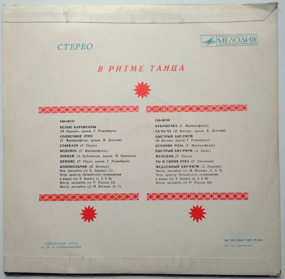 Leader [Orchestra] – А. Закис* (треков: A1, A2, A5, A6, B2, B3, B5, B8)