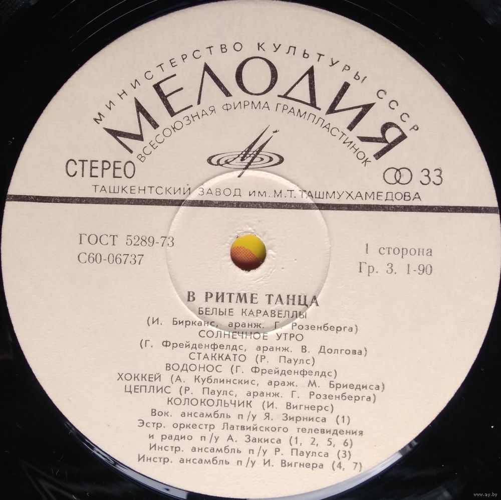 Производитель грампластинки – Ташкентский Завод Грампластинок им. М. Т. Ташмухамедова