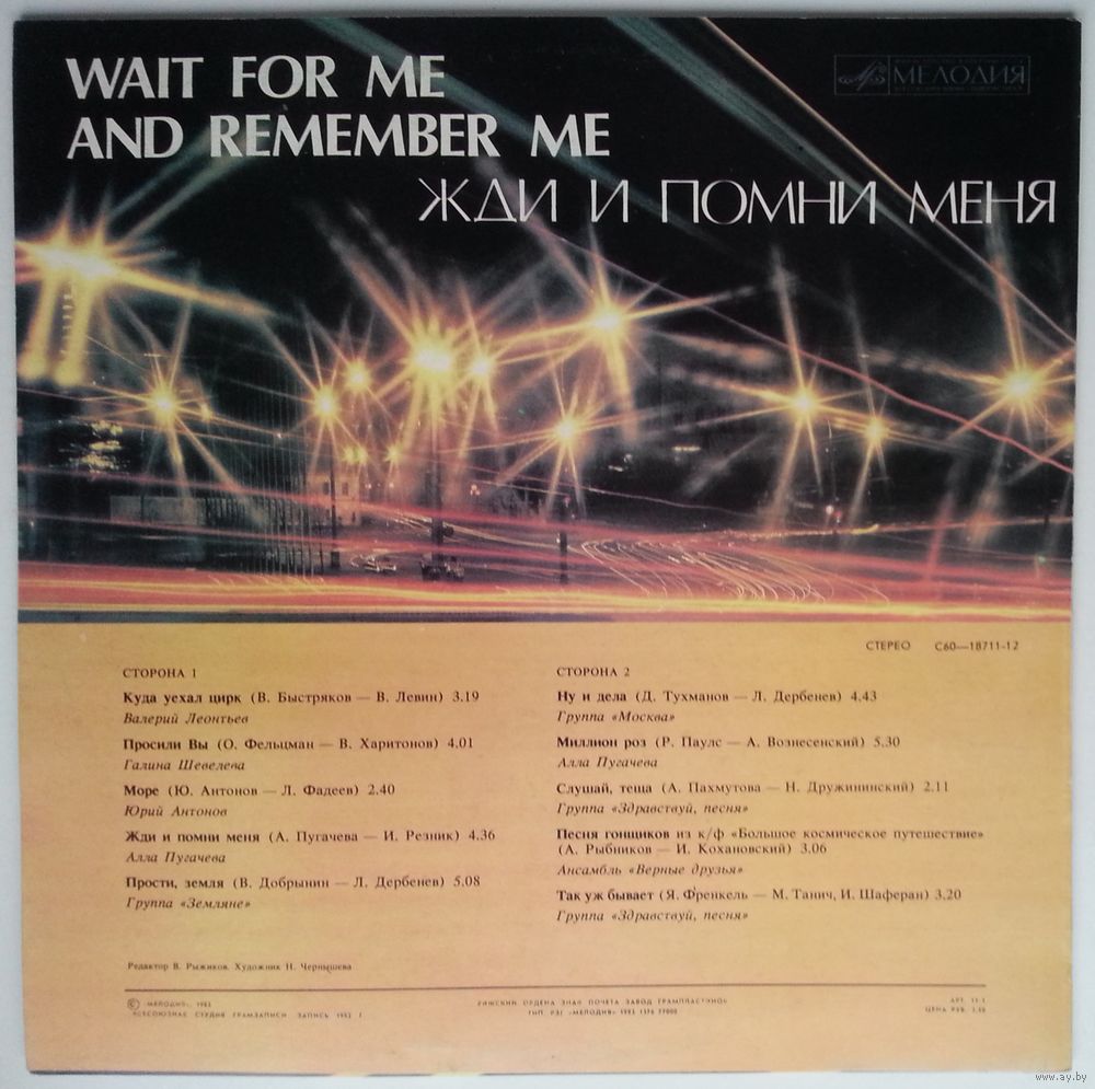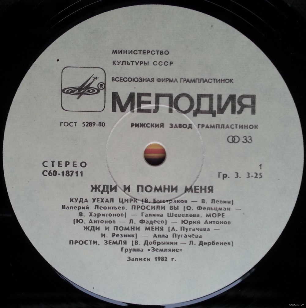 Всесоюзная студия грамзаписи. Запись 1982 г.