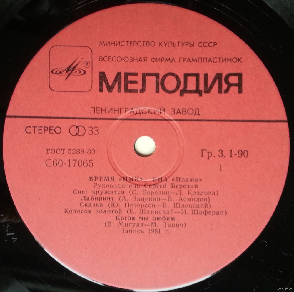 Всесоюзная студия грамзаписи. Запись 1981 г.