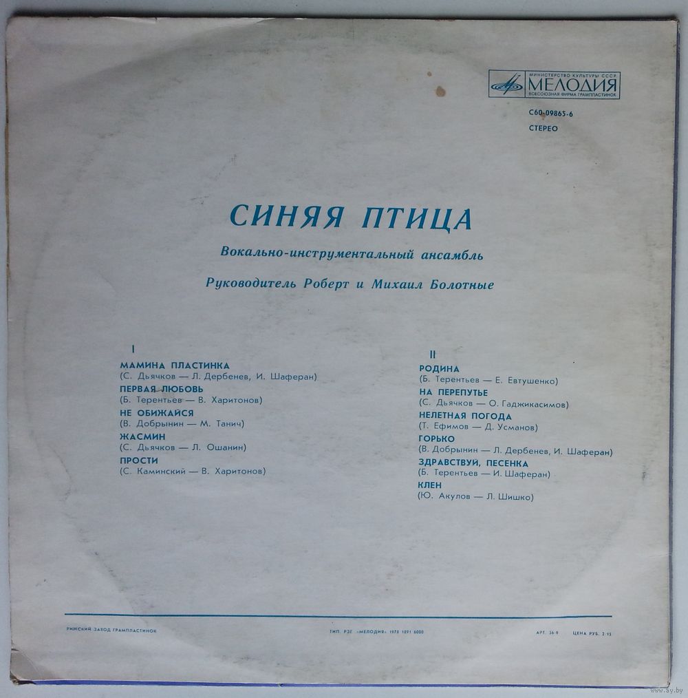 В программах ансамбля «Синяя птица» — песни советских композиторов. Коллектив постоянно пополняет свой репертуар новыми произведениями, находит для их воплощения собственные выразительные средства. В 1977 году на Всесоюзном конкурсе на лучшее исполнение советской песни ансамбль был удостоен звания лауреата. Большая заслуга в этом успехе принадлежит руководителям «Синей птицы» Роберту и Михаилу Болотным.