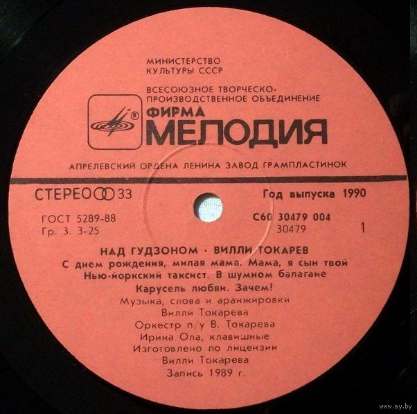 Изготовлено по лицензии Вилли Токарева. Запись 1989 года.