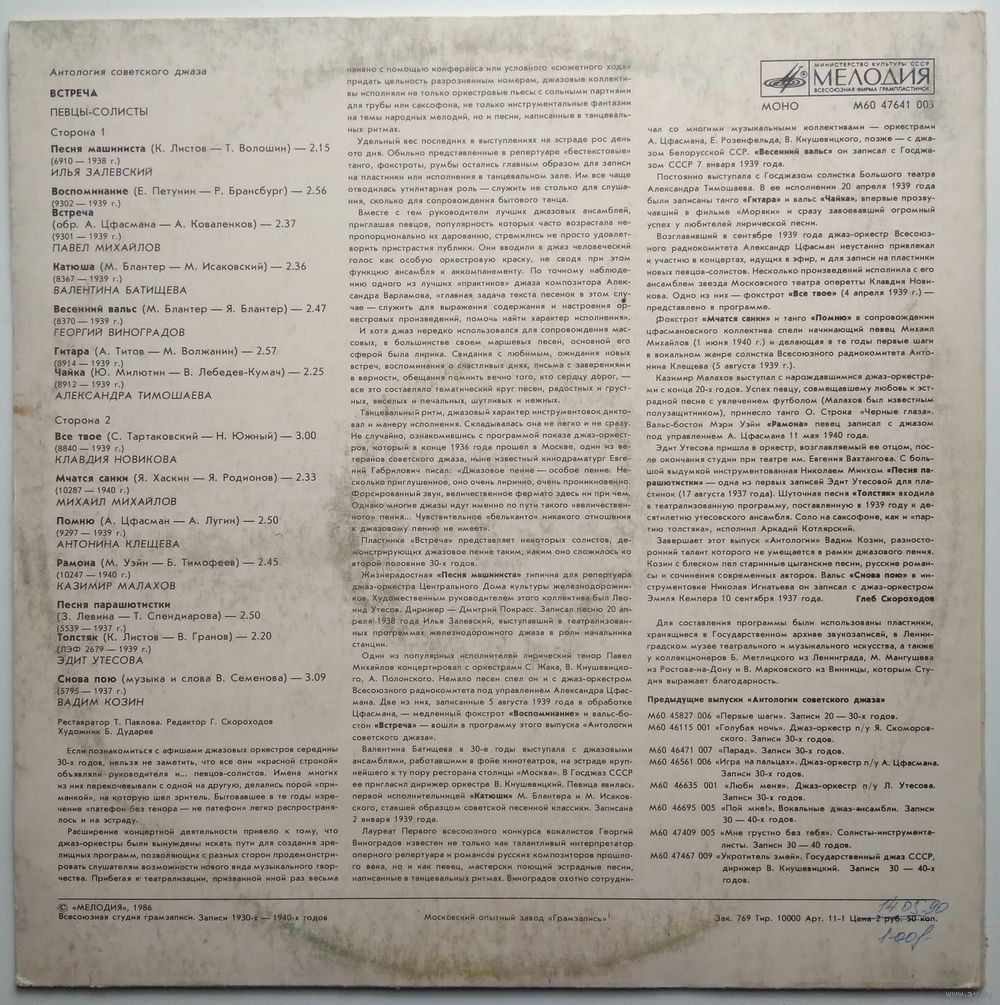 Из серии "Антология советского джаза", вып. 9