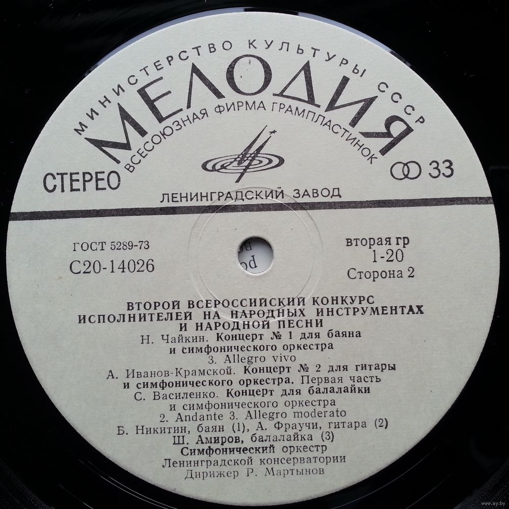 Б. Никитин (баян), А. Фраучи (гитара), Ш. Амиров (балалайка), симф. орк. Ленинградской гос. консерватории им. Н. Римского-Корсакова, дирижер Р. Мартынов