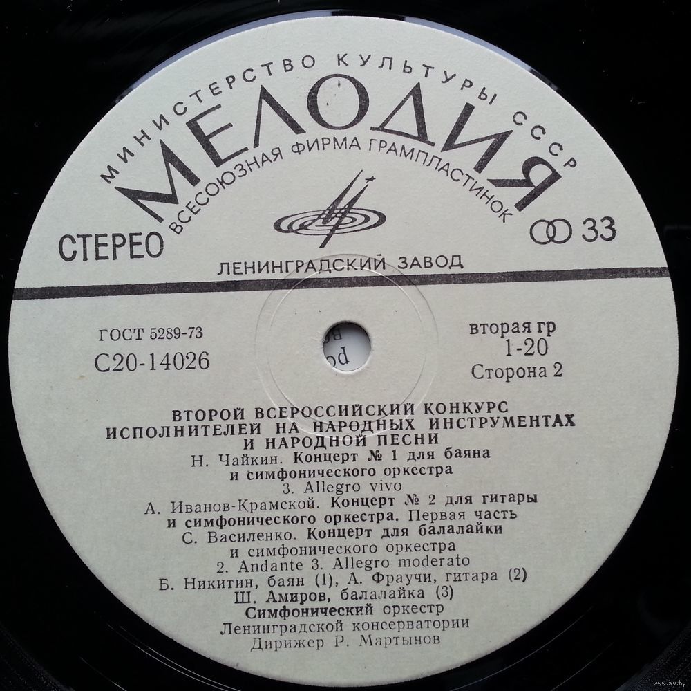 Б. Никитин (баян), А. Фраучи (гитара), Ш. Амиров (балалайка), симф. орк. Ленинградской гос. консерватории им. Н. Римского-Корсакова, дирижер Р. Мартынов