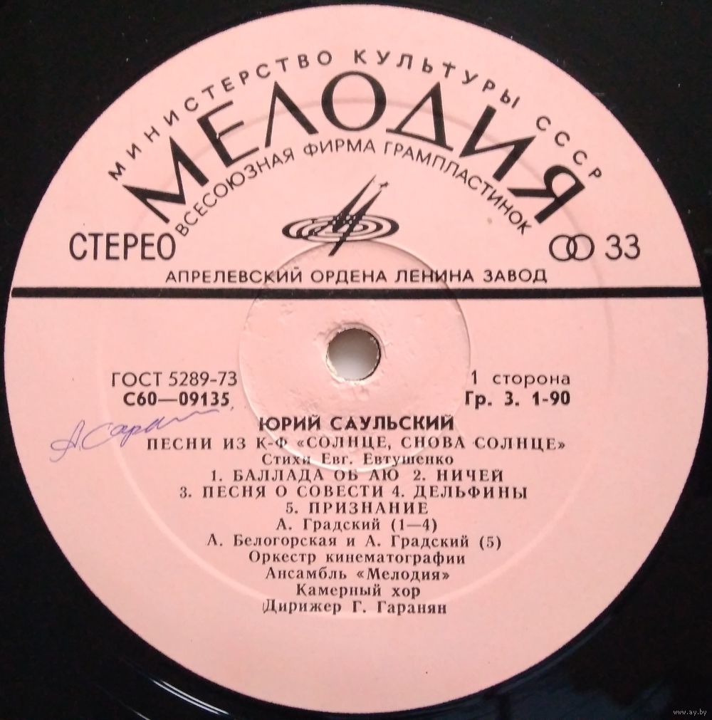 Vocals – А. Градскийя (tracks: A1 to A5), Л. Белогорская (tracks: A5)