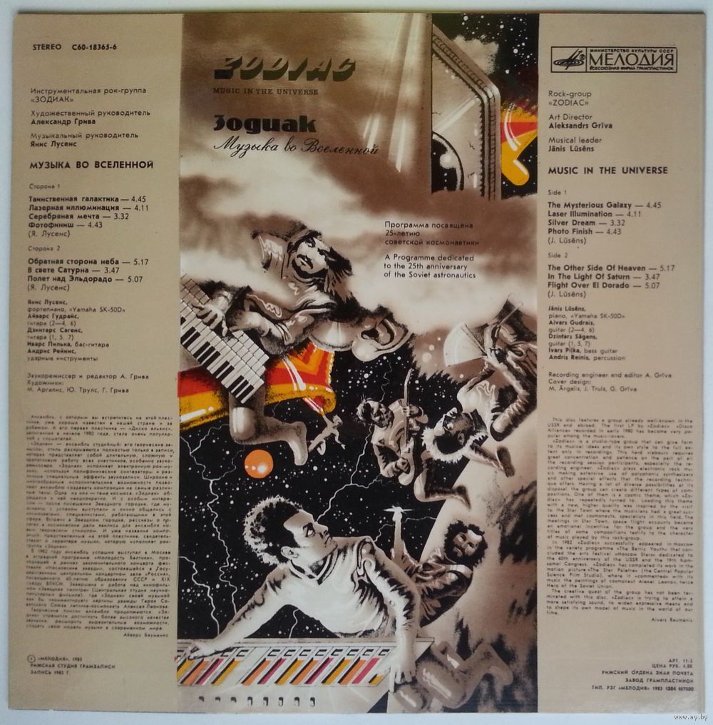 «Зодиак» — ансамбль студийный: его творческие замыслы, стиль раскрываются полностью только в записи, которая представляет собой длительную, сложную и кропотливую работу всех участников, особенно звукорежиссера. «Зодиак» исполняет электронную рок-музыку, используя полифонические синтезаторы и различные специальные эффекты звукозаписи. Широкие и многообразные исполнительские возможности позволяют ансамблю создавать композиции на самые различные темы. Одна из них — тема космоса. «Зодиак» обращался к ней неоднократно. И с особым интересом — после посещения Звездного городка, где музыканты с успехом выступали и лично общались с космонавтами, специалистами, работающими в этой сфере. Встречи в Звездном городке, рассказы о полетах в космические дали явились для ансамбля новым творческим стимулом. И уже названия композиций Яниса Лусенса, представленные на этой пластинке, свидетельствуют о характере музыки, которую исполняет рок-группа «Зодиак».