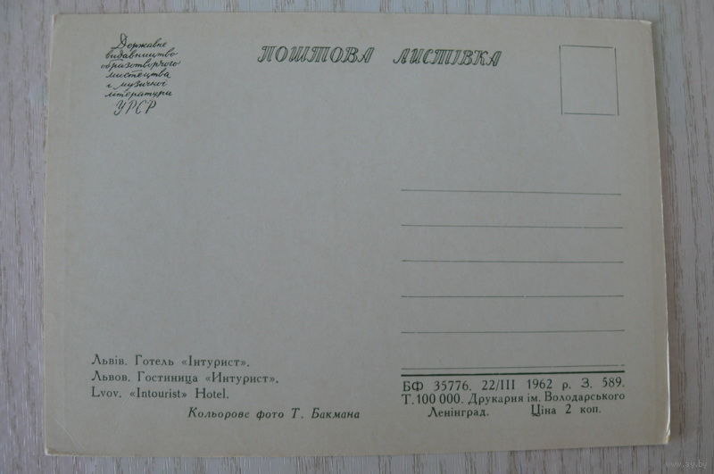 Львов. Гостиница "Интурист"; 1962, чистая.