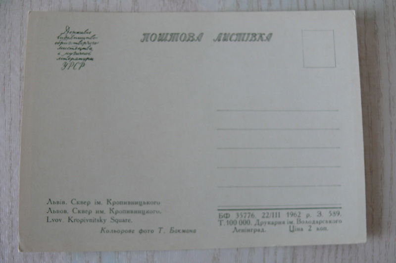 Львов. Сквер имени Кропивницкого; 1962, чистая.