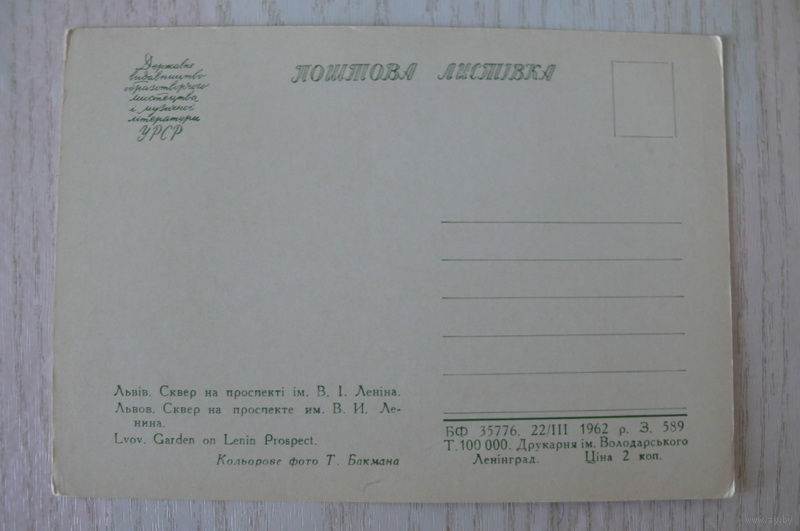 Львов. Сквер на проспекте В.И. Ленина; 1962, чистая.