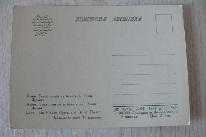 Львов. Театр оперы и балета имени Ивана Франко; 1962, чистая.