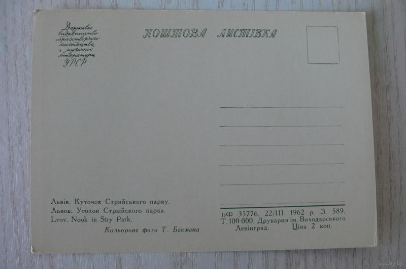 Львов. Уголок Стрыйского парка; 1962, чистая.