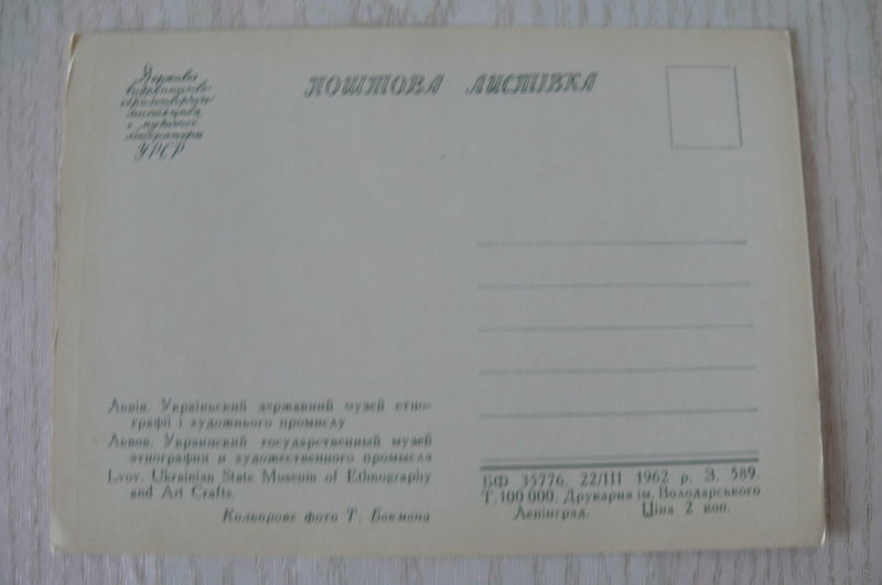 Львов. Украинский государственный музей этнографии и художественных промыслов; 1962, чистая.