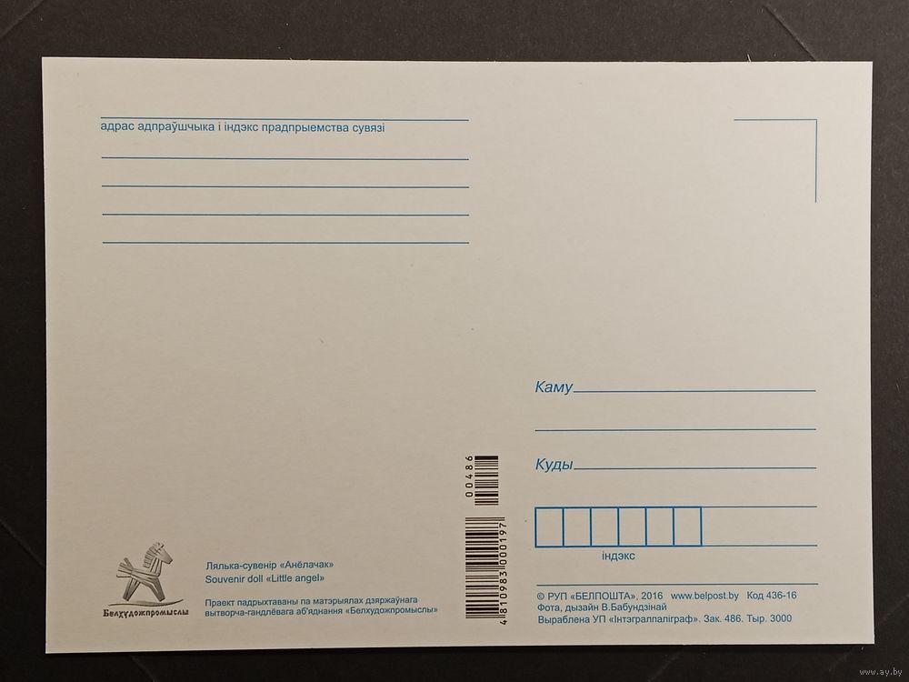 Лялька Анёл Беларусь Белпочта 2016