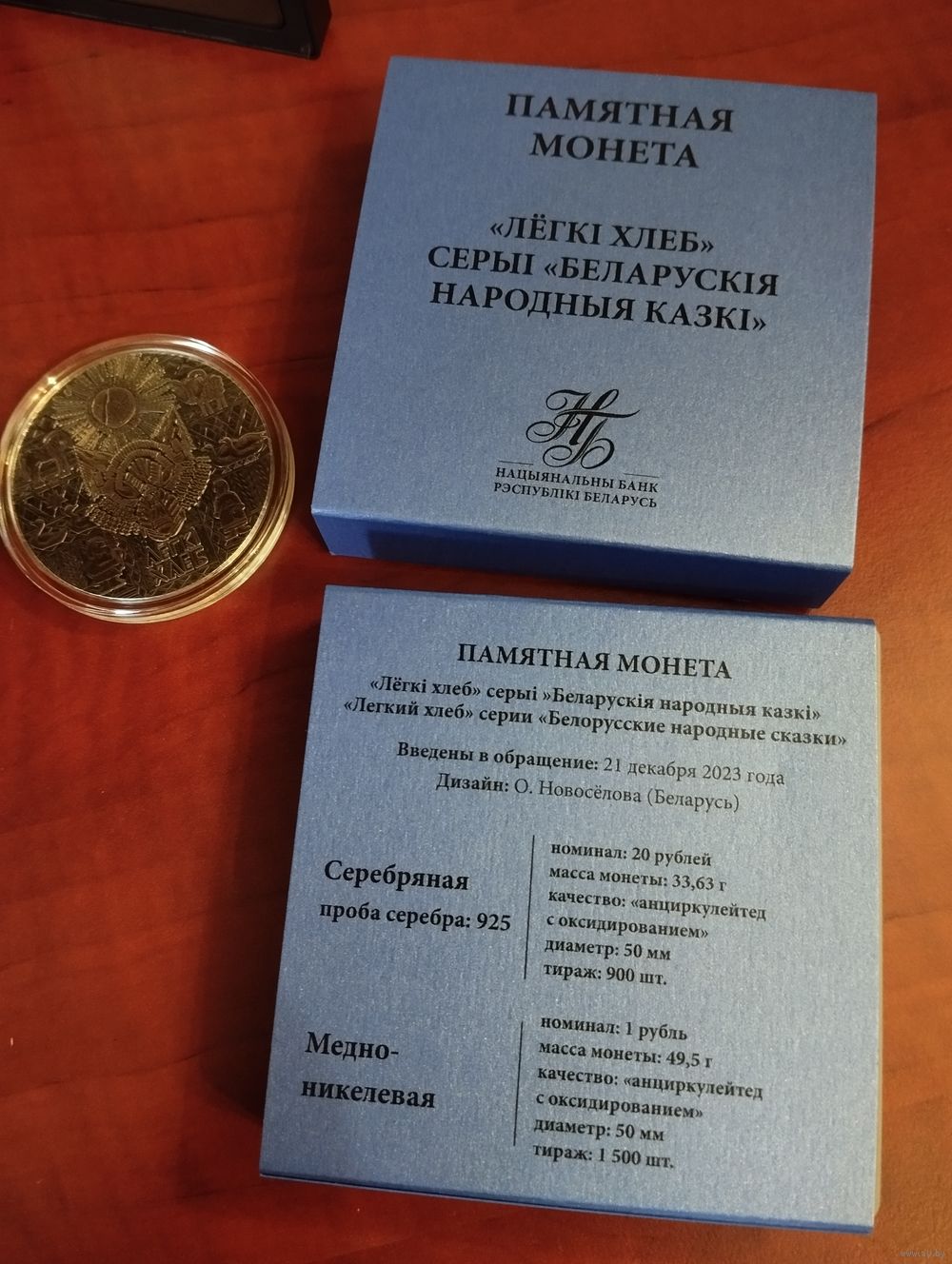 Памятная монета ”Лёгкі хлеб“ серии ”Беларускія народныя казкі“