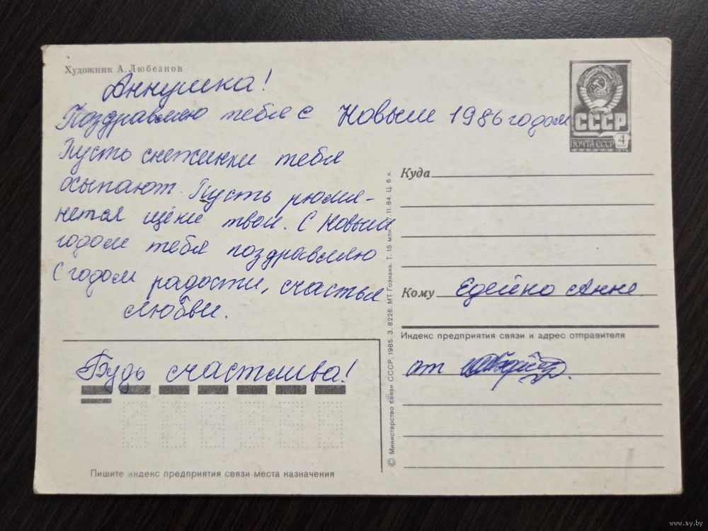 Любезнов С Новым годом 1985 подписанная открытка СССР