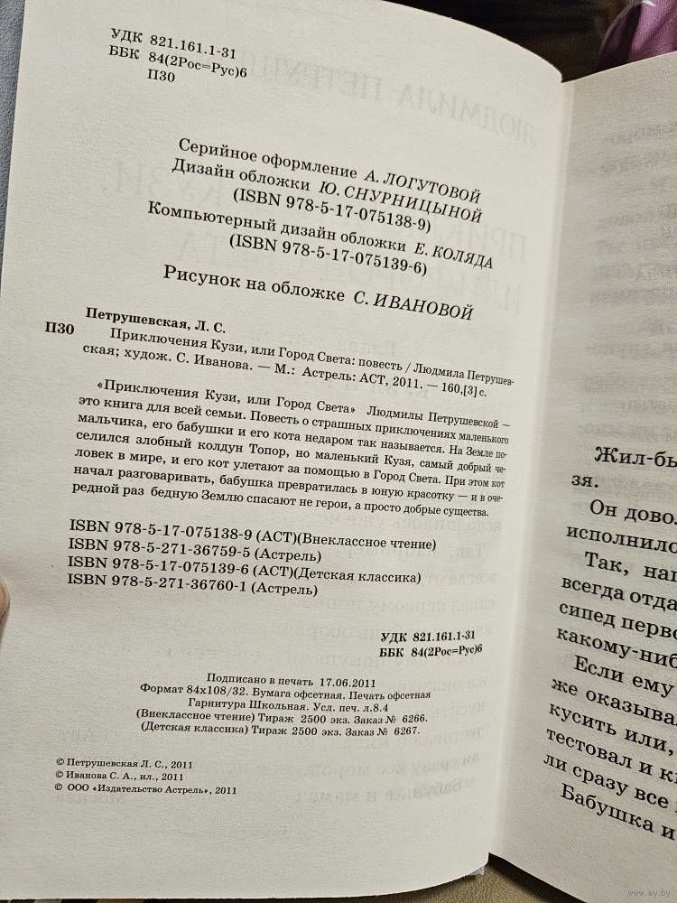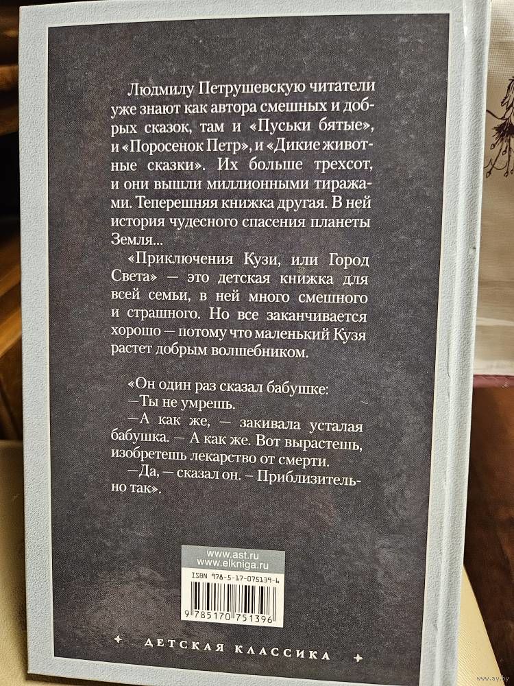 «Приключения Кузи, или Город Света» Людмилы Петрушевской это книга для всей семьи. Повесть о страшных приключениях маленького мальчика, его бабушки и его кота недаром так называется. На Земле поселился злобный колдун Топор, но маленький Кузя, самый добрый человек в мире, и его кот улетают за помощью в Город Света. При этом кот начал разговаривать, бабушка превратилась в юную красотку - и в очередной раз бедную Землю спасают не герои, а просто добрые существа.
