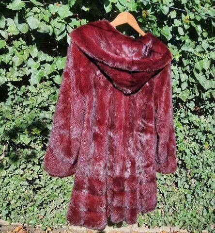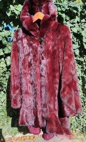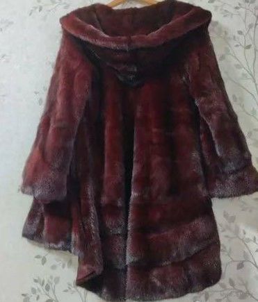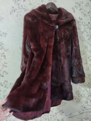На отечественные 44-46 размеры. Длина спереди 78 см. Длина со стороны спинки 90 см. На Ваши плечи от 38 см до 44 см одинаково отлично "садится". Длина рукава от плеча 60 см-63 см в зависимости от ширины Ваших плеч. На Ваш личный обхват груди не более 92 см! У шубы расстояние от подмышки до подмышки 51 см,т е. полный объём 102 см. Ваши бёдра не более 98 см, т к. у шубы полный объём бёдер 108 см. Разлет подола 160 см. Мех со стороны спинки фалдит: ниспадающий,струящийся. Окрас спелой вишни на ярком солнце и темнее при комнатном освещении.Состояние идеальное