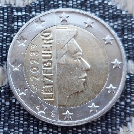Люксембург 2 евро 2023 года, UNC. Король. Клеймо Гастауер-Клер Иветта. Птица и Посох Меркурия.