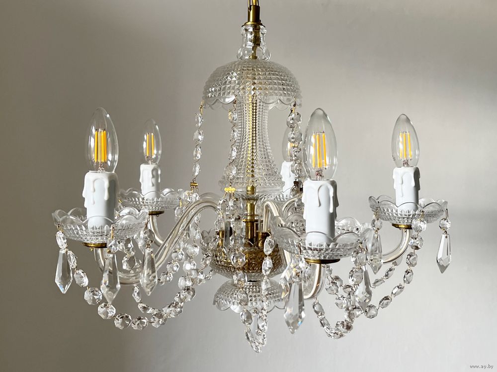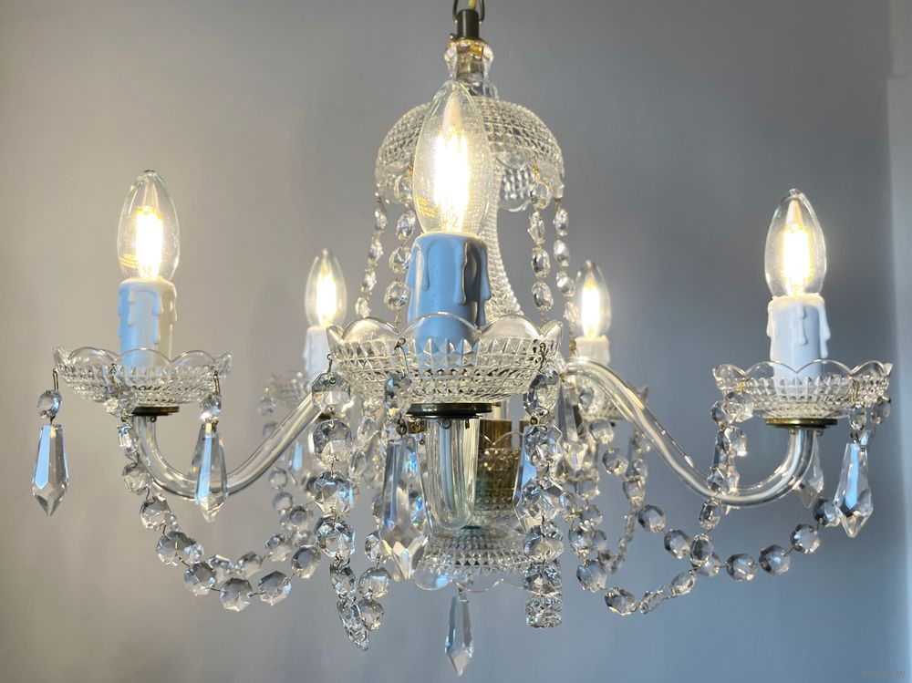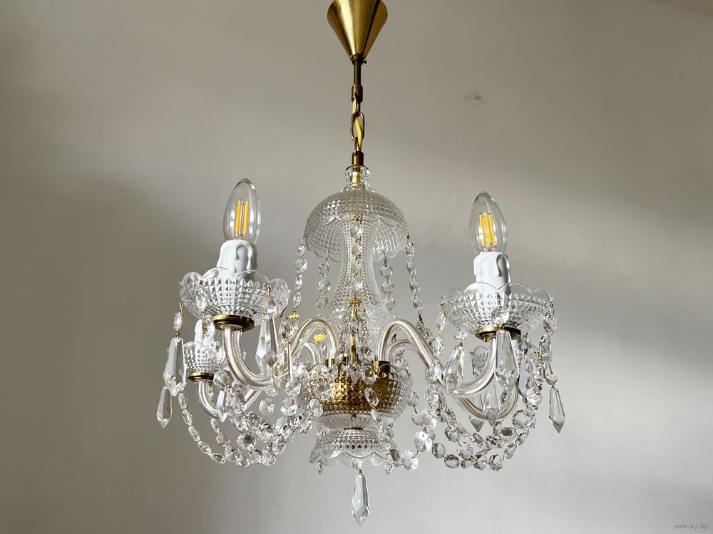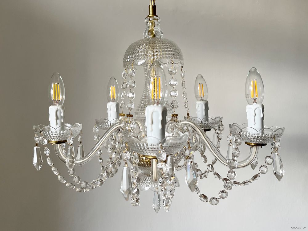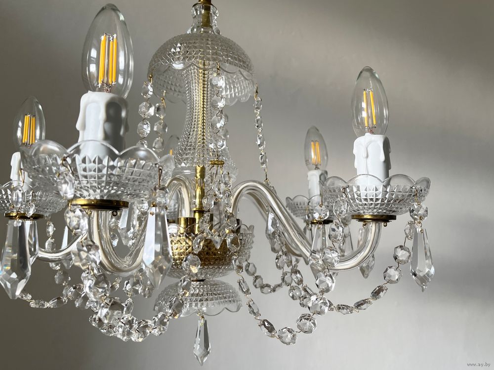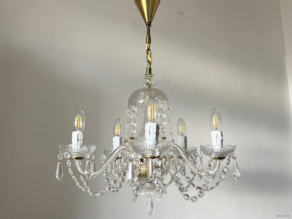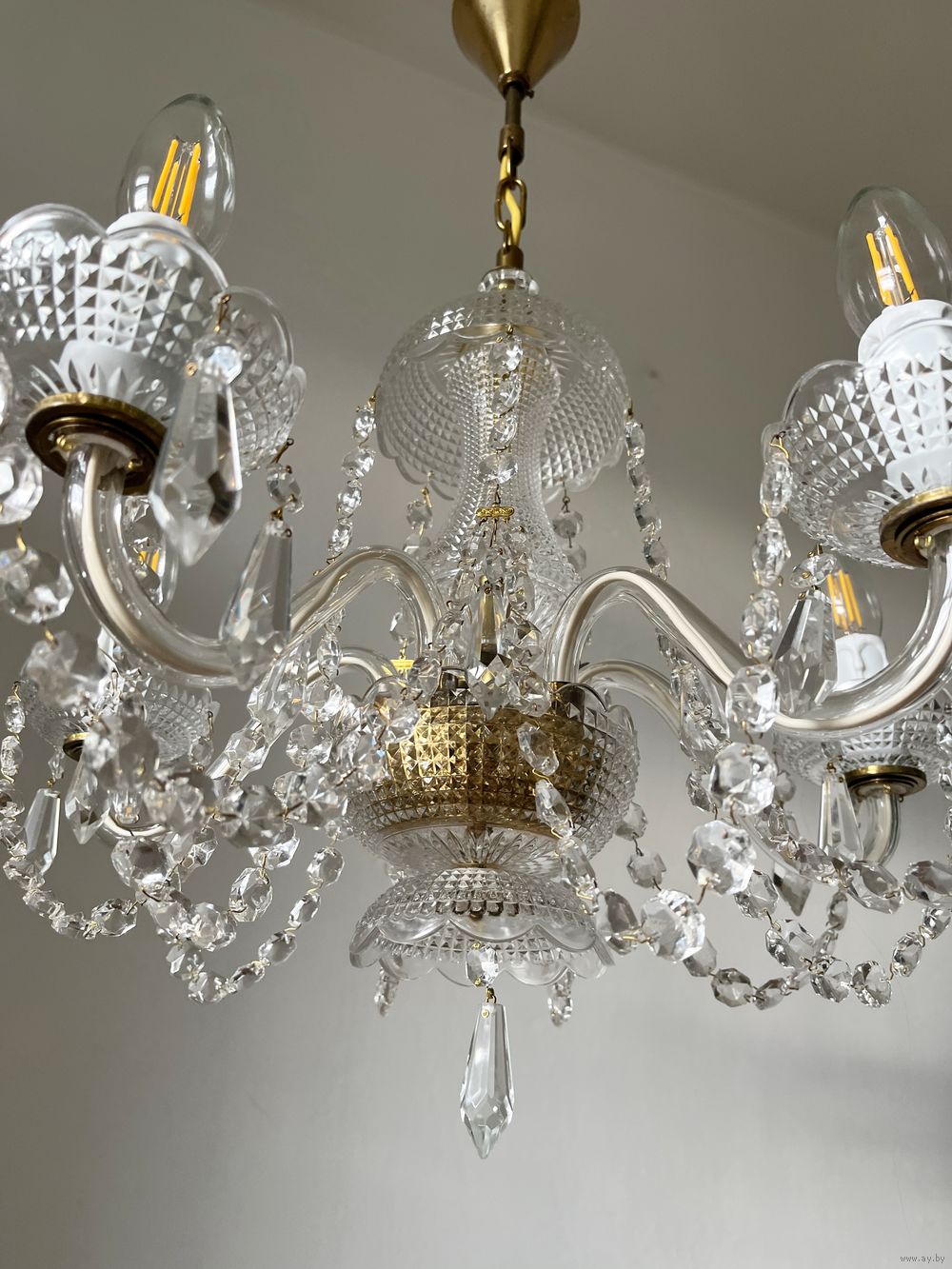 рабочая, все хрустальнаые подвесы на месте, стеклянные чаши целые