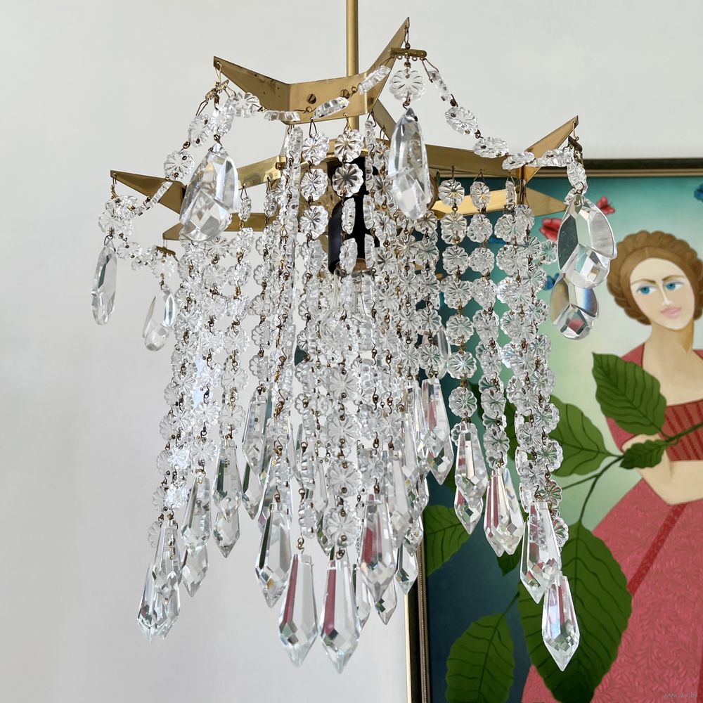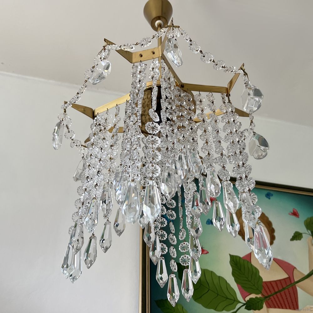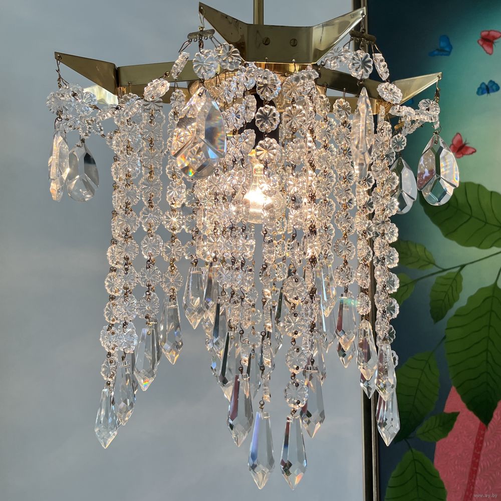 Люстра хрусталь латунь Чехословакия винтаж 70х34см