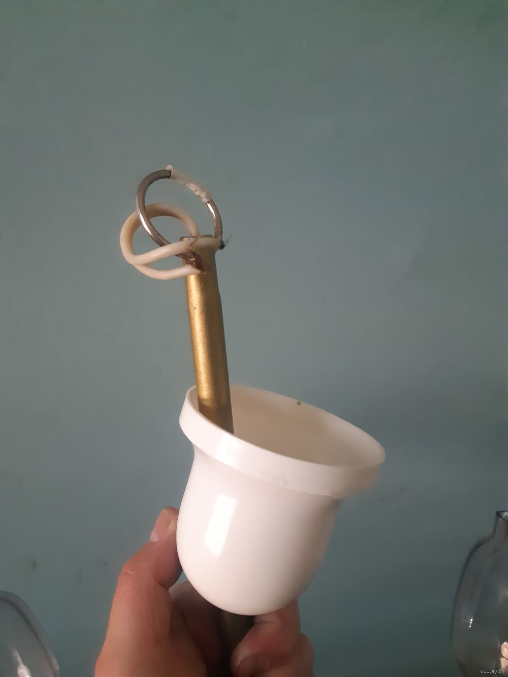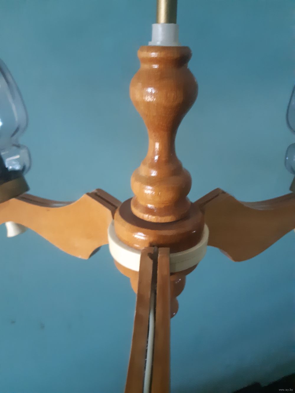 | Нет одного стеклянного плафона. Всё остальное есть, электропроводка, патроны, верхний потолочный держатель. | |