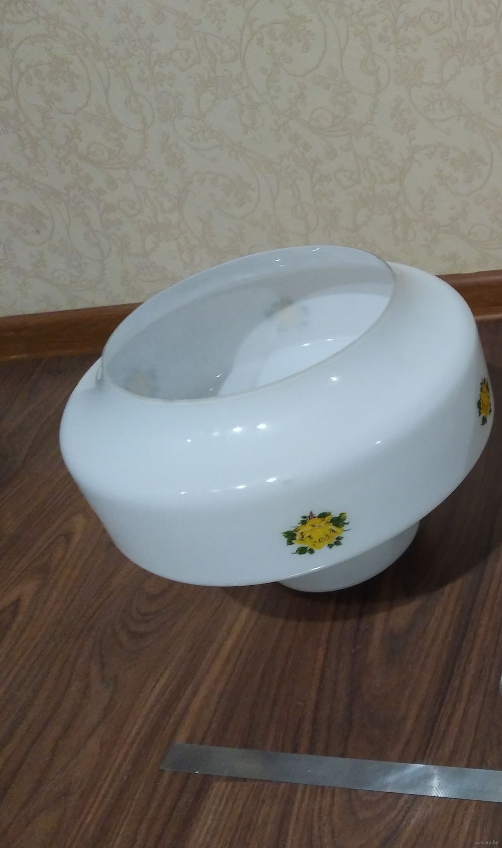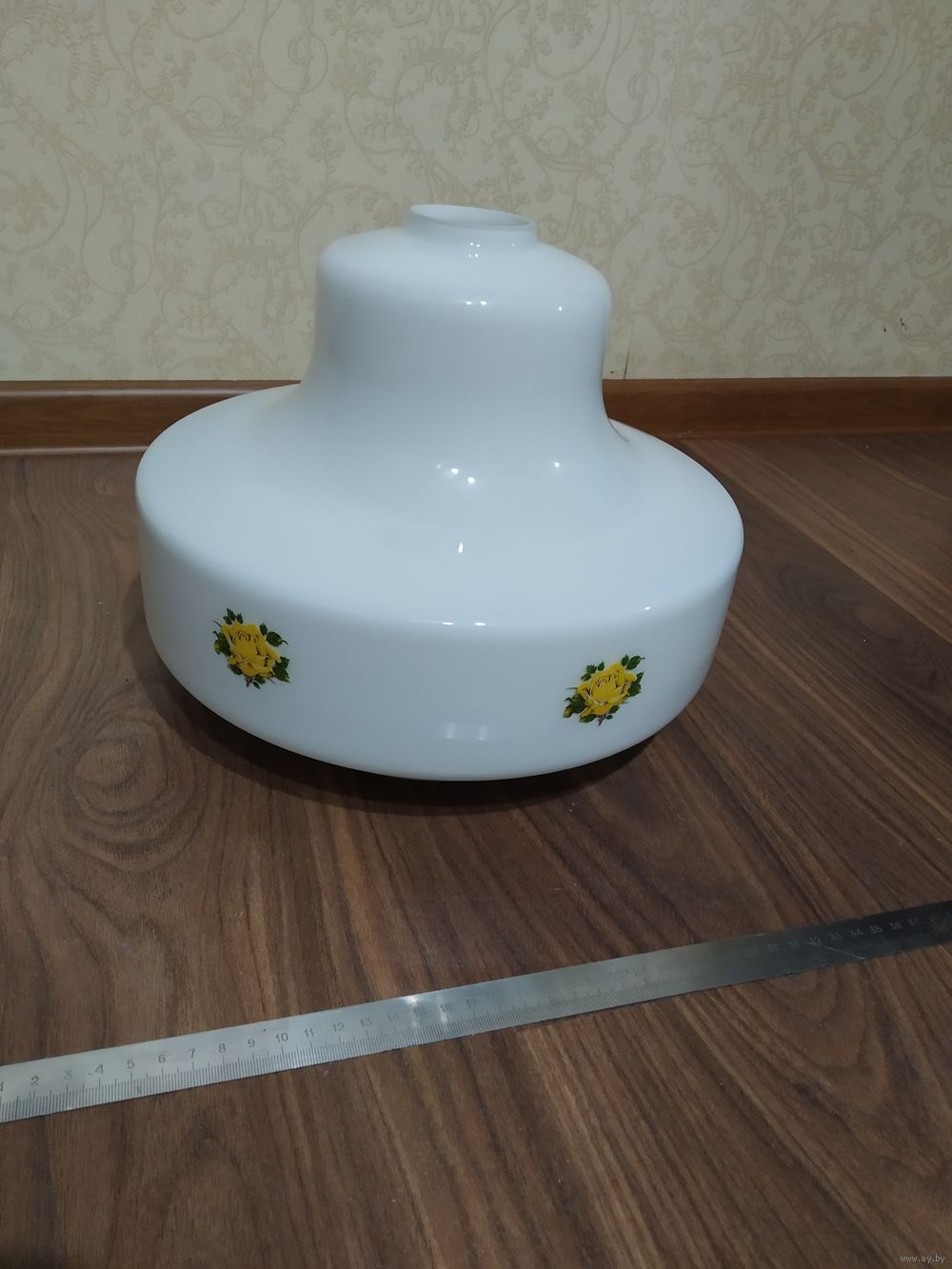 С цветочками и вставками из натурального дерева. Высота лампы 56 см (при желании можно уменьшить), Ø плафона 24 см, посадочный Ø плафона 20,5 см.