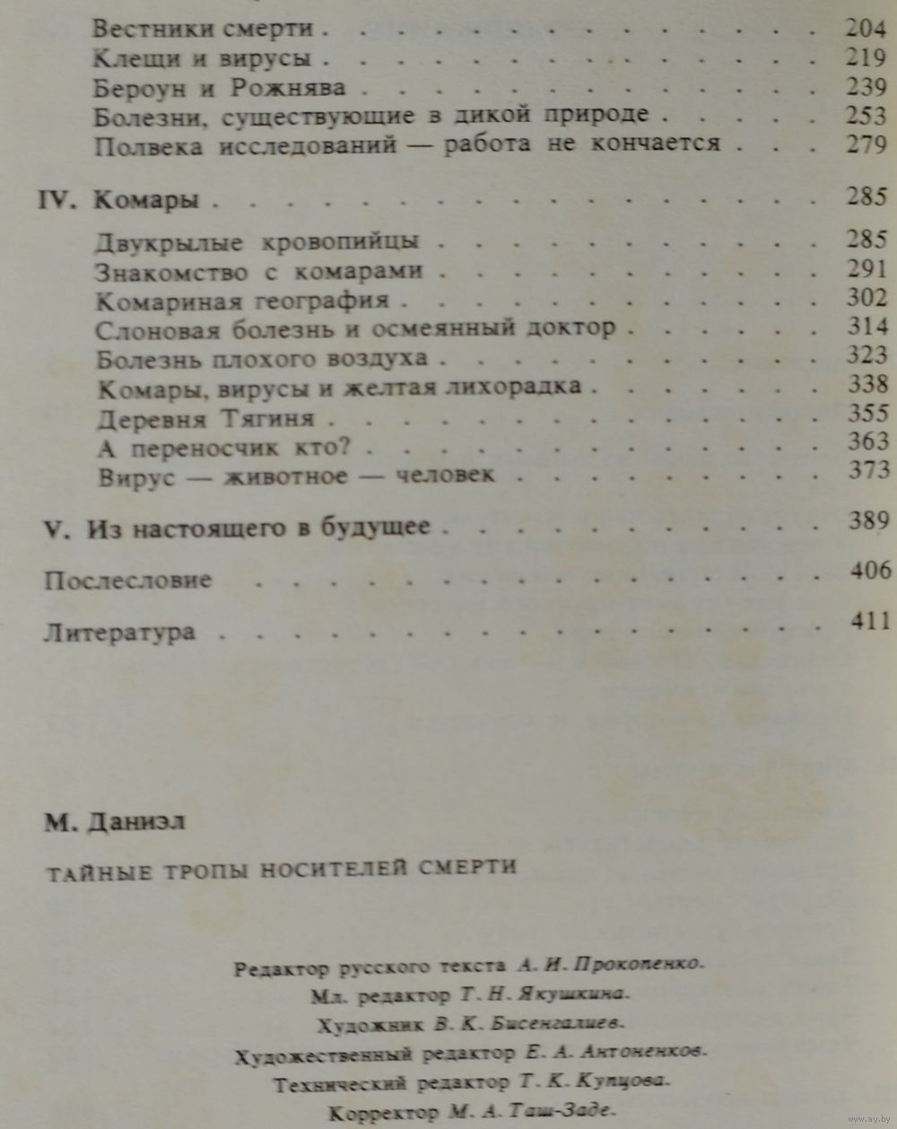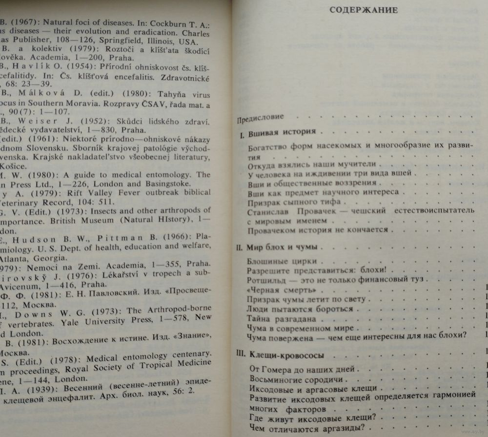 430 стр. В книге известного чешского ученого и альпиниста описываются «взаимоотношения» человечества и переносчиков эпидемических болезней. Не сразу, по мере роста культуры и научных знаний, к людям приходило понимание того, что привычные, хотя и неприятные спутники людей, начиная с жизни в пещерах и ранее — блохи, вши и др. являются переносчиками чумы и других болезней, буквально косивших человечество вплоть до XX века.
