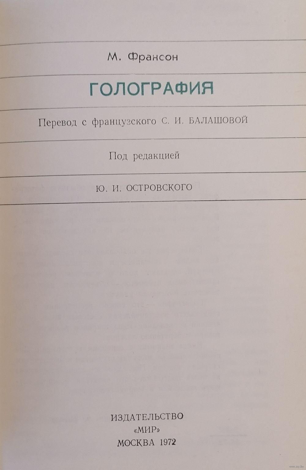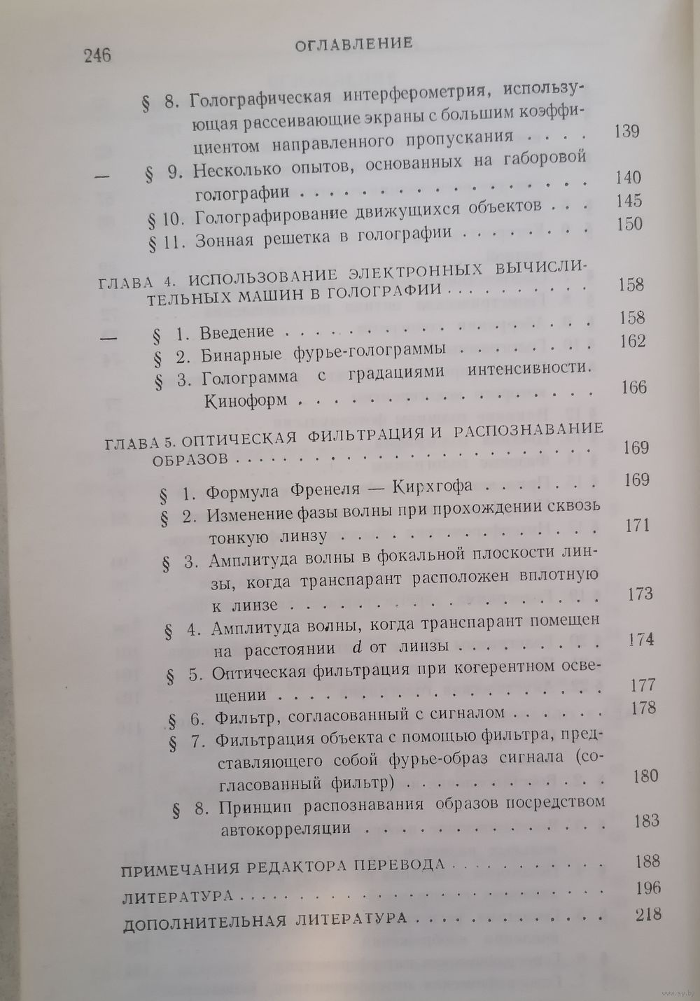 С о д е р ж а н и е. Основные понятия. Основы голографии и возможности ее применения. Образование изображений в голографии. Использование электронных вычислительных машин в голографии. Оптическая фильтрация и распознавание образов.