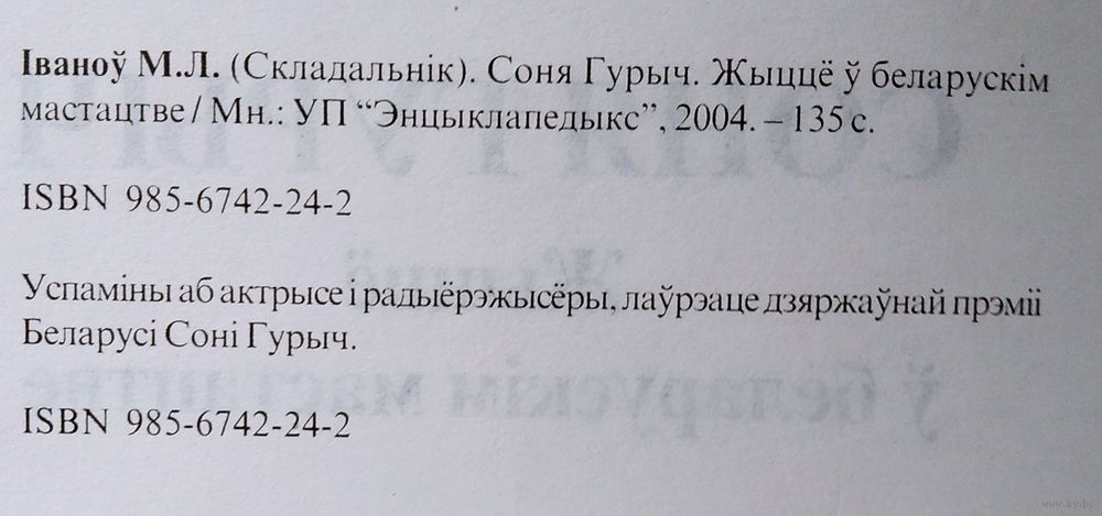 М.Л.Іваноў (склад.). Соня Гурыч. Жыццё ў беларускім мастацтве. Мн. Энцыклапедыкс, 2004 г. 122 с. Цверды пераплет.