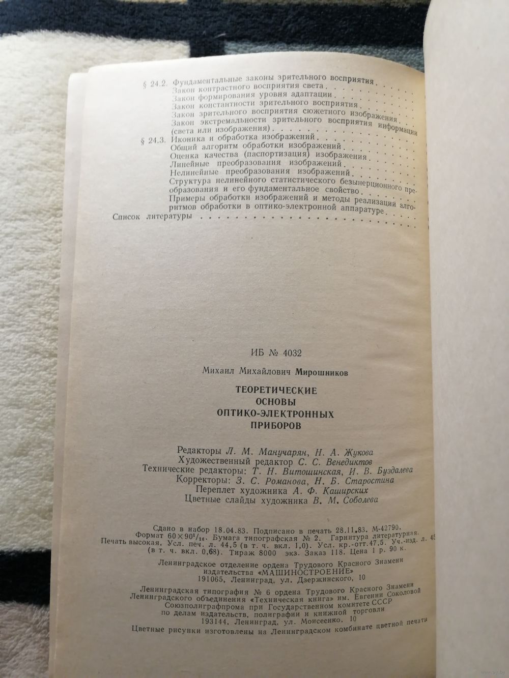 В учебном пособии последовательно изложены теоретические основы пассивных оптико-электронных приборов, т. е. приборов, воспринимающих либо собственное излучение объектов и фонов, либо отраженное ими излучение естественных источников. Основными разделами книги являются теория сканирования, теория растровой модуляции света, теория выделения оптического сигнала на фоне случайных помех. Рассмотрены вопросы восприятия и анализа изображений. Отдельный раздел посвящен тепловидению. Материалы книги основаны на собственных многолетних исследованиях автора в ГОИ им. С. И. Вавилова. Учебное пособие предназначено для студентов технических вузов.