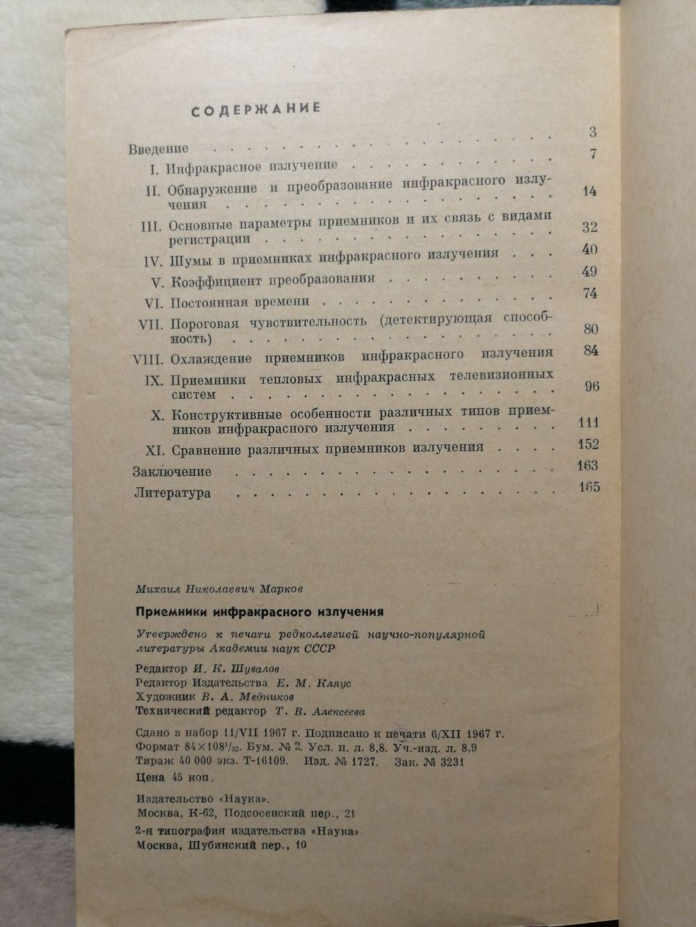 В книге рассматриваются физические принципы и конструктивные особенности современных тепловых и фотоэлектрических приемников инфракрасного излучения, которые являются основными элементами в инфракрасных системах наблюдения, автоматики, управления, а также в приборах для космических, астрофизических, химических исследований в инфракрасной области спектра. В центре внимания находятся факторы, определяющие качество приемников - пороговую чувствительность, инерционность, коэффициент преобразования. Значительное место отведено рассмотрению влияния окружающей среды и помех на работу инфракрасных приемников, связи свойств приемников с требованиями измерительных систем, роли охлаждения.