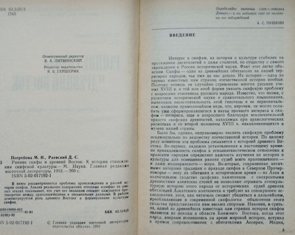 В книге рассматриваются проблемы происхождения и ранней истории скифов. Анализ реального содержания этнонима "скифы" на разных этапах показывает, что учёт его эволюции снимает кажущееся противоречие между археологическими и письменными данными. В работе демонстрируется роль древнего Востока в формировании культуры скифов.