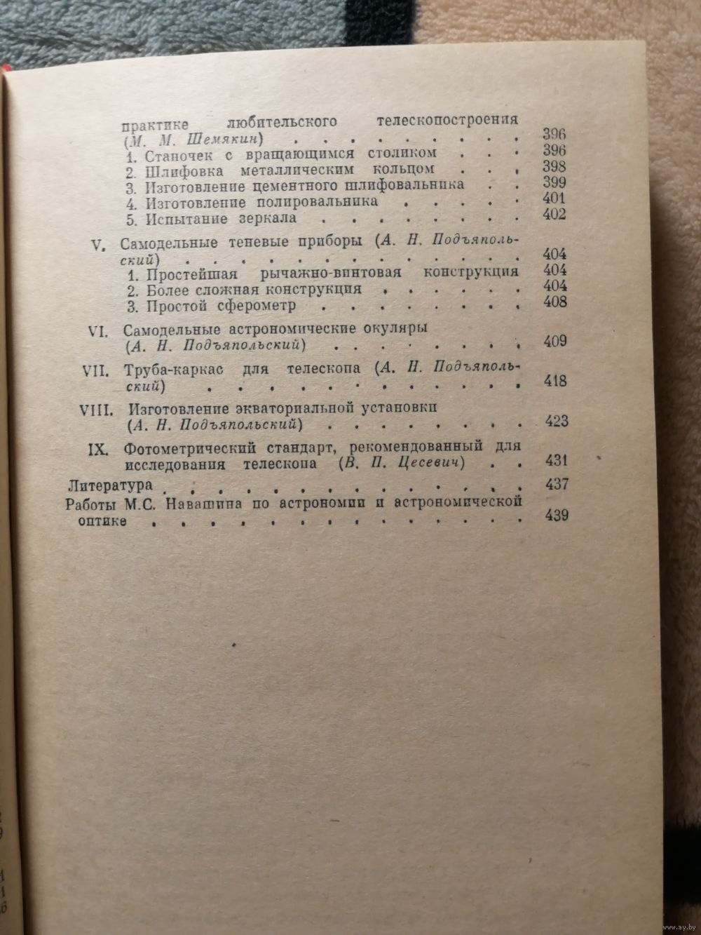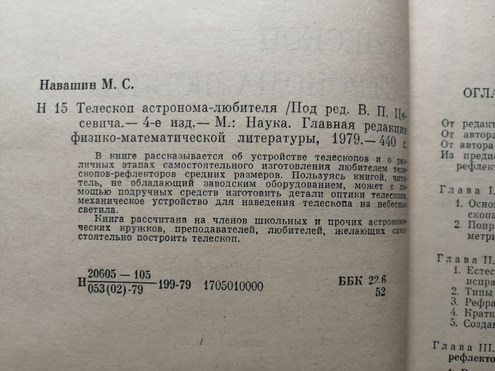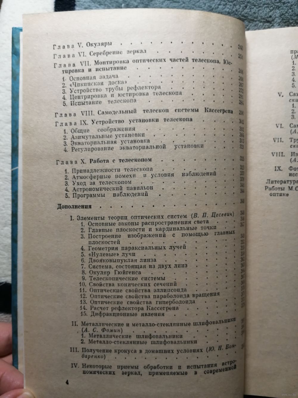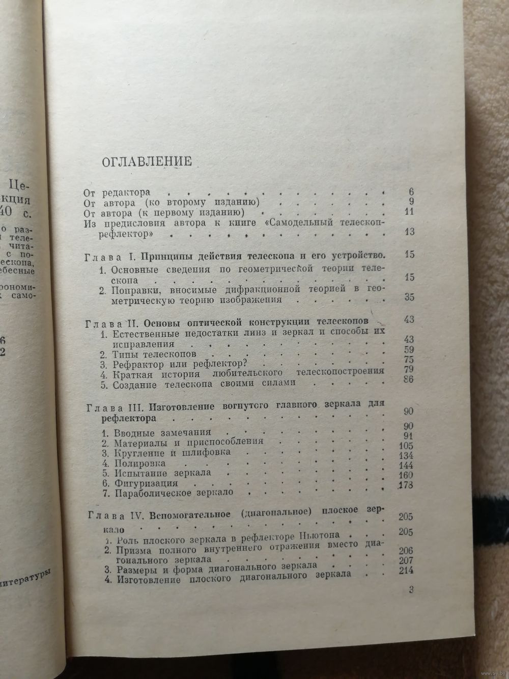 В книге рассказывается об устройстве телескопов и о различных этапах самостоятельного изготовления любителем телескопов-рефлекторов средних размеров. Пользуясь книгой, читатель, не обладающий заводским оборудованием, может с помощью подручных средств изготовить детали оптики телескопа, механическое устройство для наведения телескопа на небесные светила.