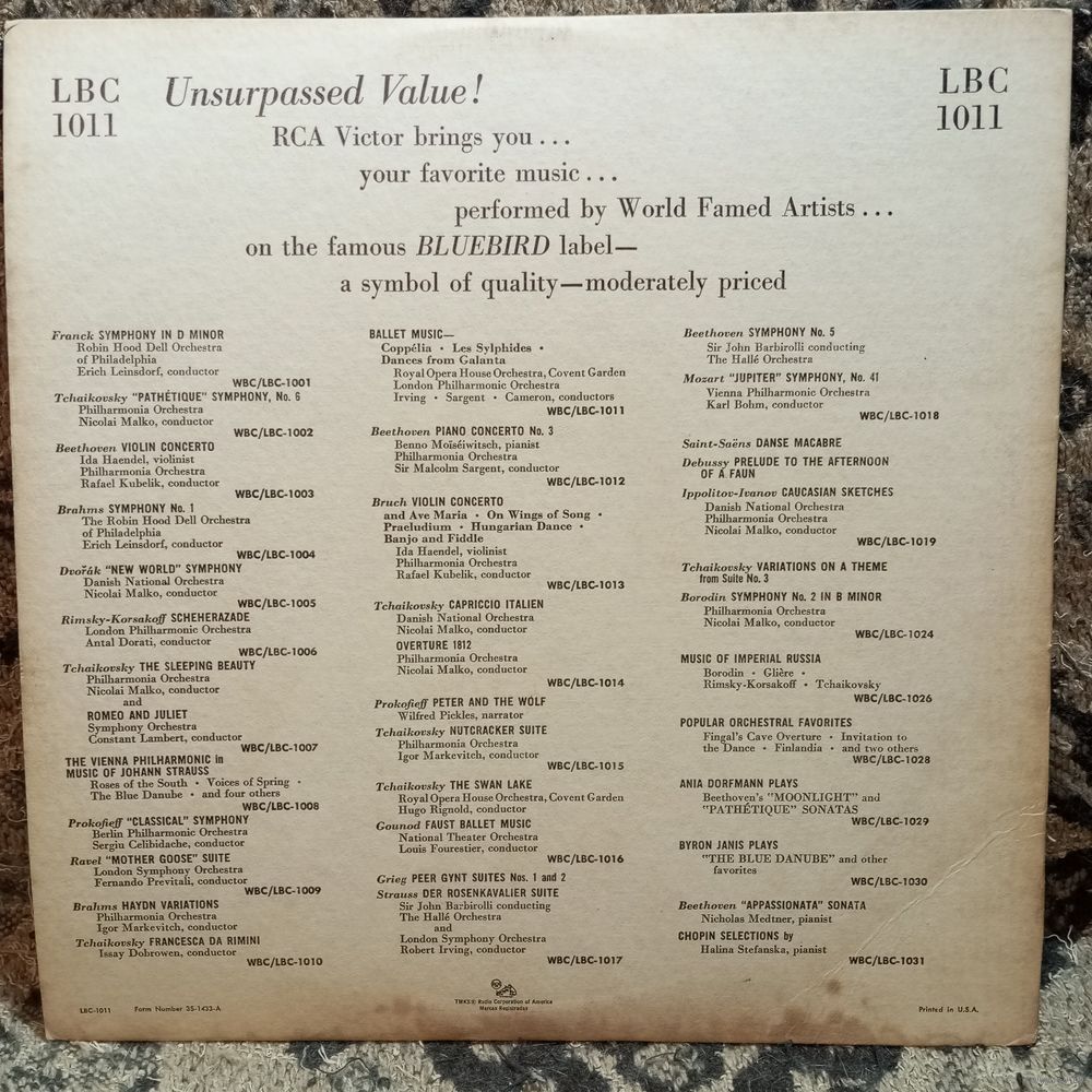 M. Sargent and London PhO; R. Irving and Royal Opera House Orch*.; B. Cameron and London PhO** - Ф. Шопен. Сильфиды / Л. Делиб. Коппелия* / З. Кодай. Dances from Galanta** - RCA Victor, USA