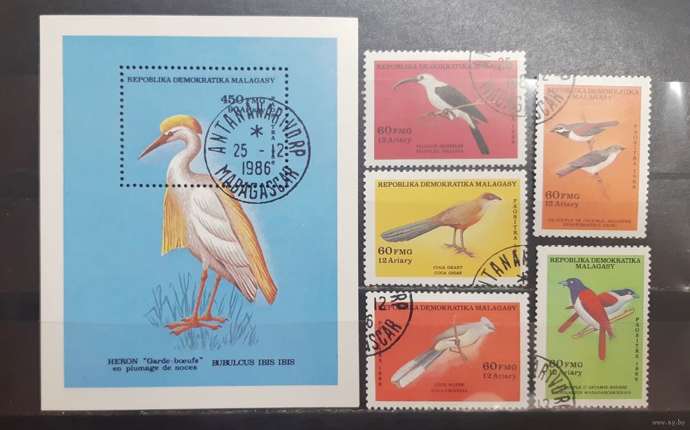 Мадагаскар. 1986 год. Фауна. Птицы. Блок и 5 марок (1045)