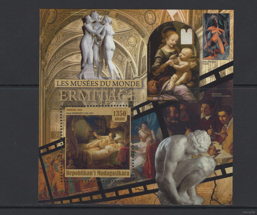 Мадагаскар 2016** Искусство Скульптура Живопись Картина голландского художника Рембрандта "Даная"